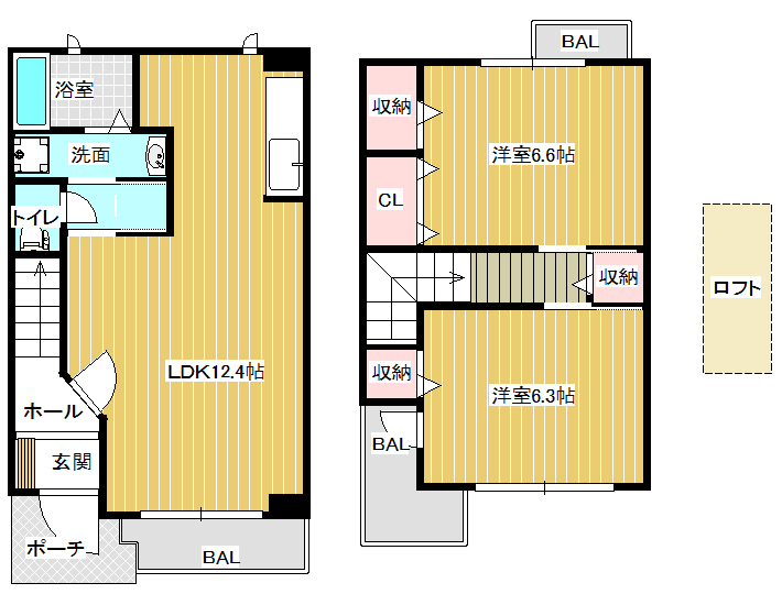 | 間取り詳細 | LDK12.4、洋室6.6、洋室6.3 |