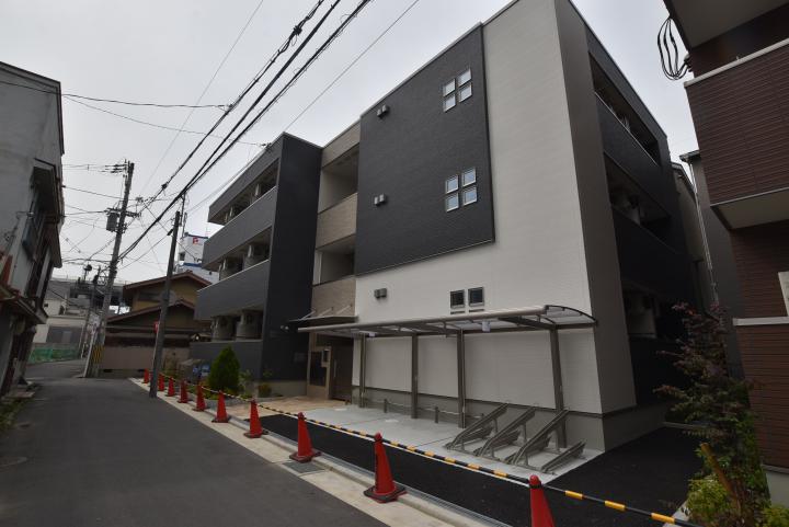 【 アパート 】近鉄大阪線・久宝寺口駅から徒歩1分の新築アパート。バストイレ別のセパレート。洗面台、洗濯機置き場。