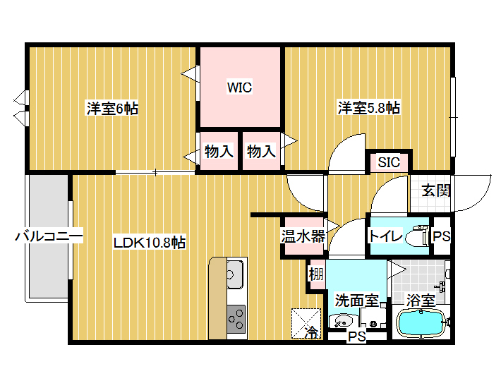 | 間取り詳細 | LDK10.8,洋室6.1、洋室5.8 |