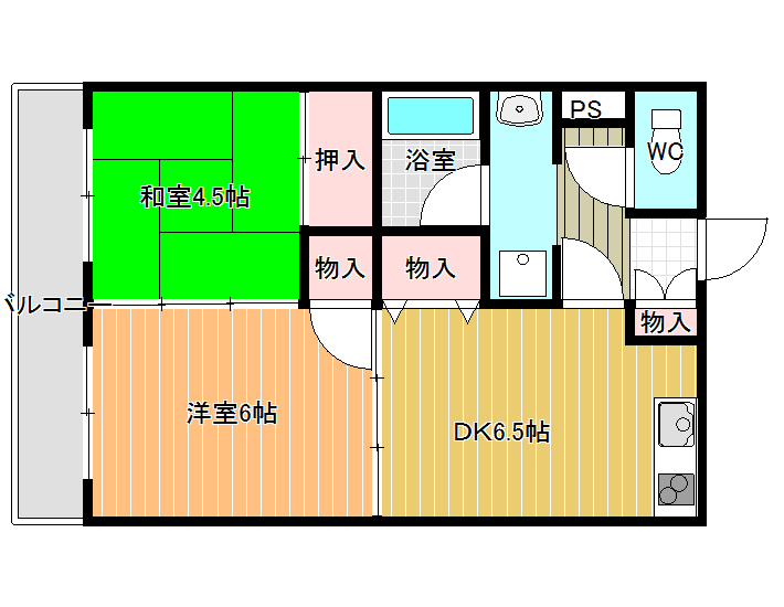 | 間取り詳細 | DK6.5、和室4.5、洋室6 |