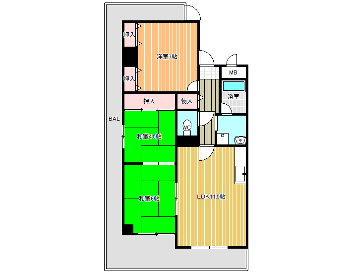 | 間取り詳細 | 洋7.0 和6 和4.5 LDK11.5 |
