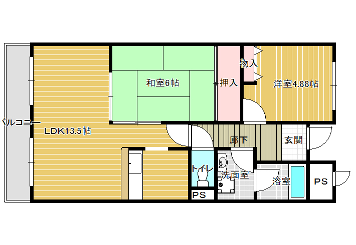 | 間取り詳細 | LDK13.5,和室6、洋室5 |