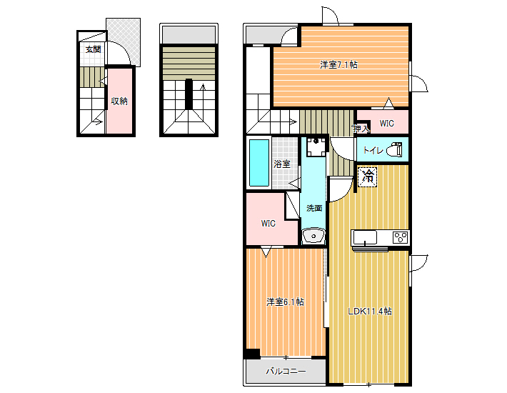 | 間取り詳細 | LDK11.4、洋室6.1、洋室7.1 |