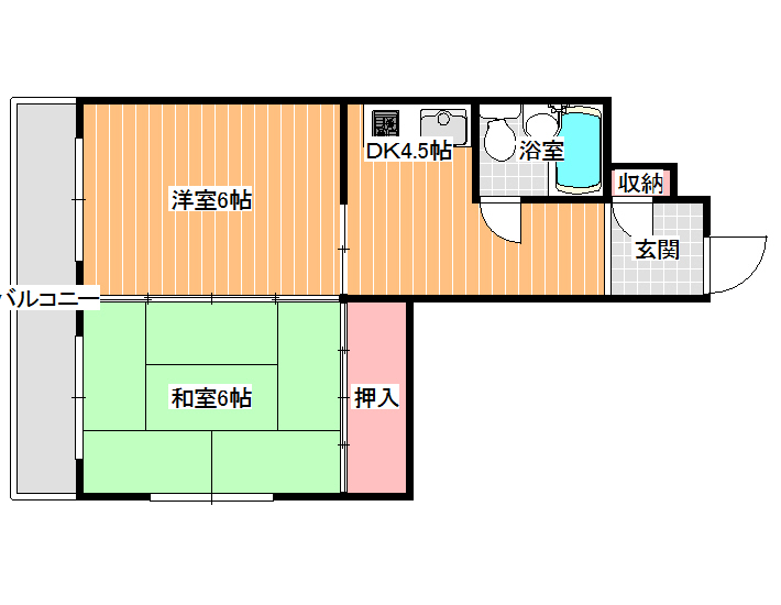 2Kの広々した空間!