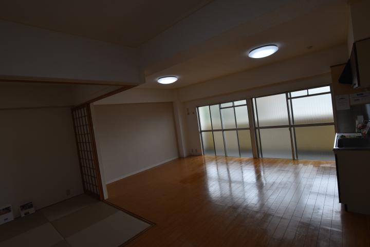 南向きの明るい16帖広々リビングです。