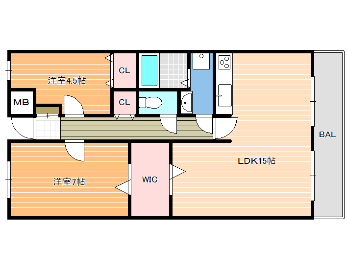 オール洋室、ウォークスルークローゼットもあり収納たっぷりの2LDKのお部屋です。